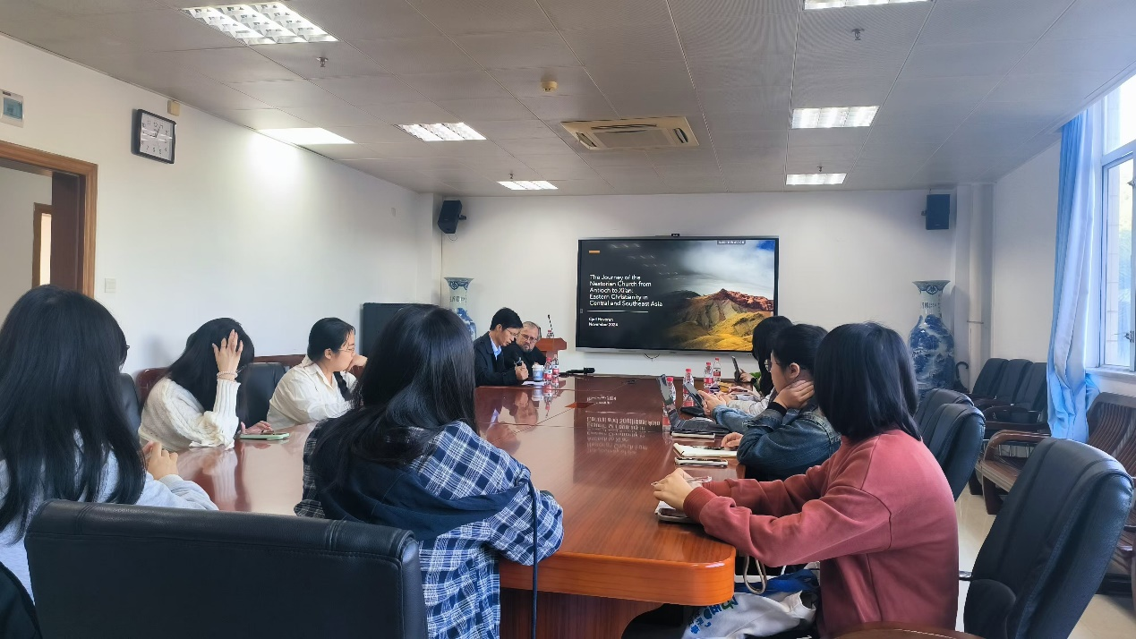 2024年11月26日上午,斯德哥尔摩大学公司的Cyril Hovorun教授在广外北校区七教408会议室作《中外文化交流中的聂斯托利派:从安提阿到西安》的专题讲座。会议由太阳城集团邱业祥教授主持,50余名师生参会。