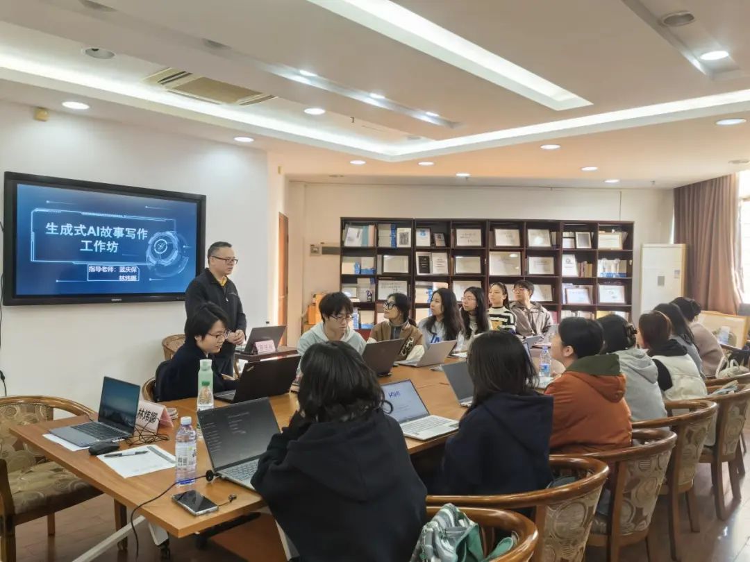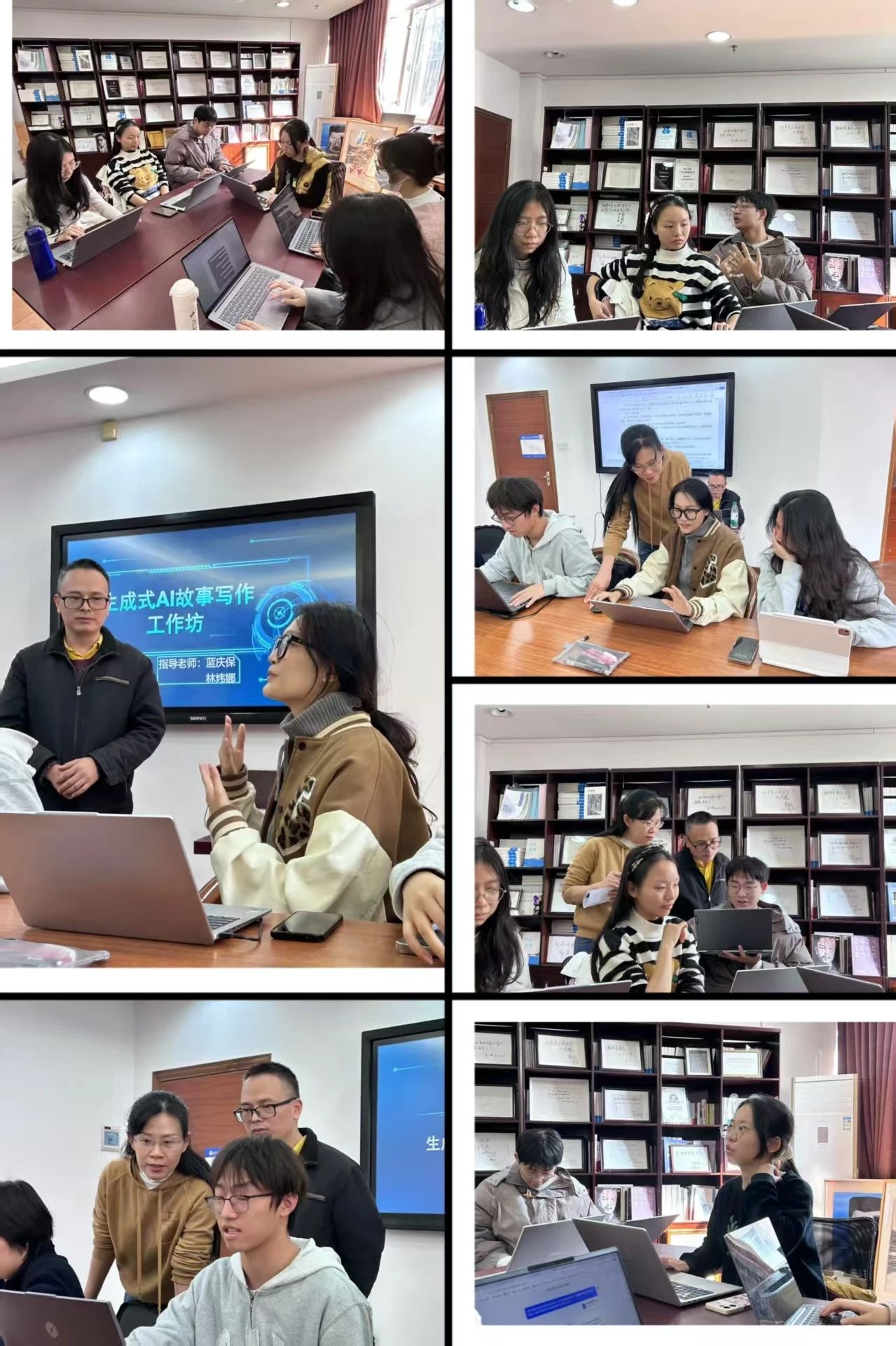 此次生成式AI故事写作工作坊按照“讲解—示范—实践—分享—调整—复盘”等核心环节进行教学,不仅让同学们掌握了实用的AI写作技巧,更让大家对人工智能与创意写作的融合有了更深刻的认识。在科技飞速发展的今天,AI为创意写作带来了新的机遇和挑战,而同学们在这次工作坊中所积累的知识、经验以及被点燃的创作热情,将助力他们跑向AI创作的新赛道。