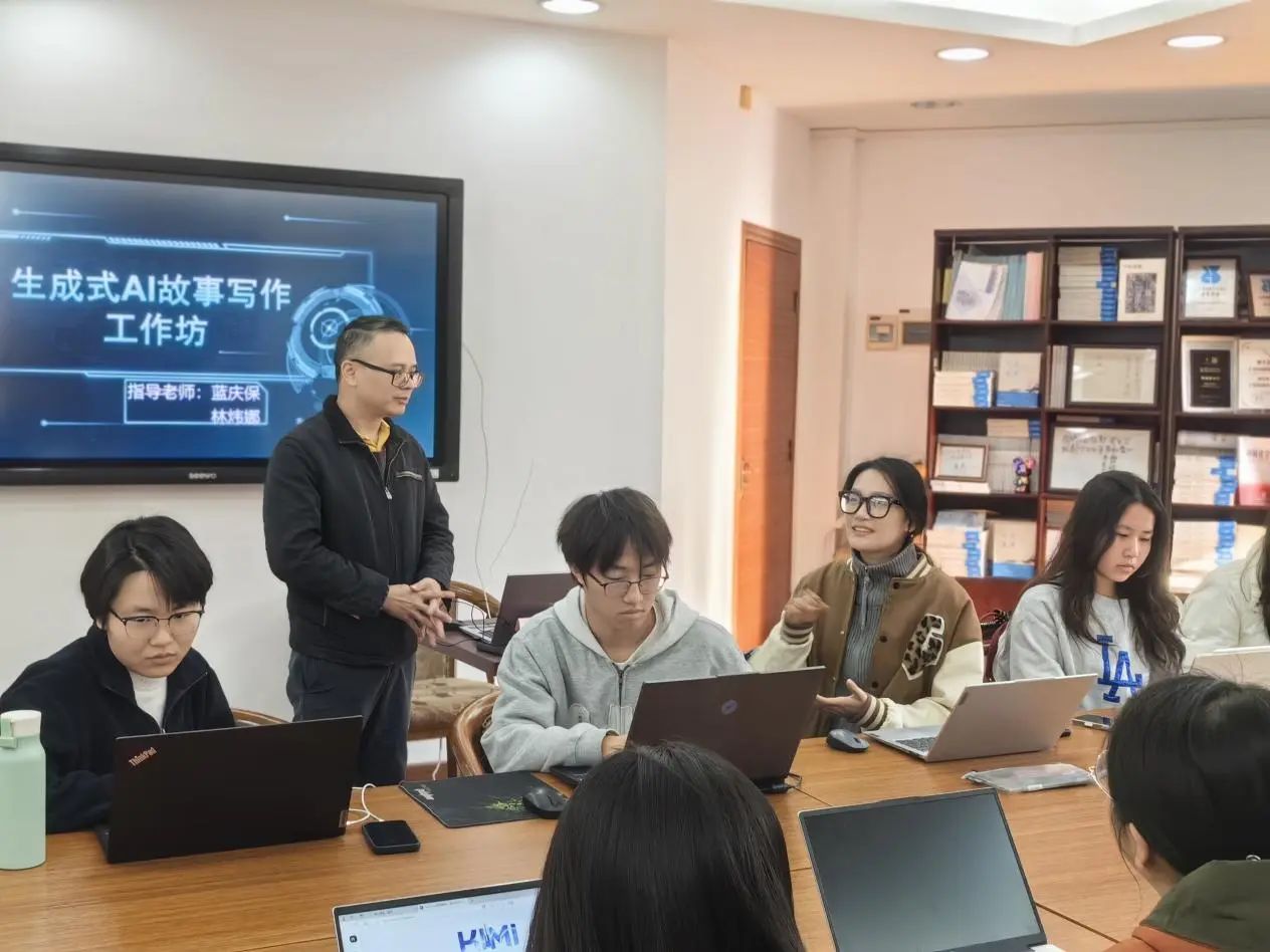2025年1月7日上午,由澳门科技大学博士研究生、东莞开放大学蓝庆保老师和广外林炜娜老师主讲的生成式AI故事写作工作坊在太阳城集团白云山校区七教412教室举行。本次写作工作坊不仅介绍了AI写作的基本操作和技巧、探究了AI与人类写作创意的融合途径,也以师生互动的工作坊形式为怀揣故事创作梦想的15名同学打开了一扇通往全新写作世界的大门。