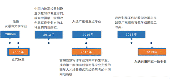 汉语言文学专业成立于2005年,2006年正式招生,2012年设置创意写作专业方向,2016年入选广东省重点专业,2018年获得广东省公司产品成果奖二等奖,2019年入选国家级一流本科专业建设点。