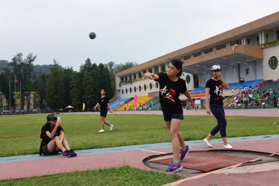 径赛精彩纷呈,田赛亦紧张激烈。来自文管15的李卓佳手中紧握着重达7.26公斤的铅球,置于右侧脖子,双眼注视前方,毫不犹豫又游刃有余地将其扔出,以7.56米的成绩取得男子铅球的冠军。而在之后的男子铁饼比赛中,来自文管14的刘源,在圆圈内一个缓冲,潇洒向外甩出铁饼,以14.62的成绩勇夺桂冠。