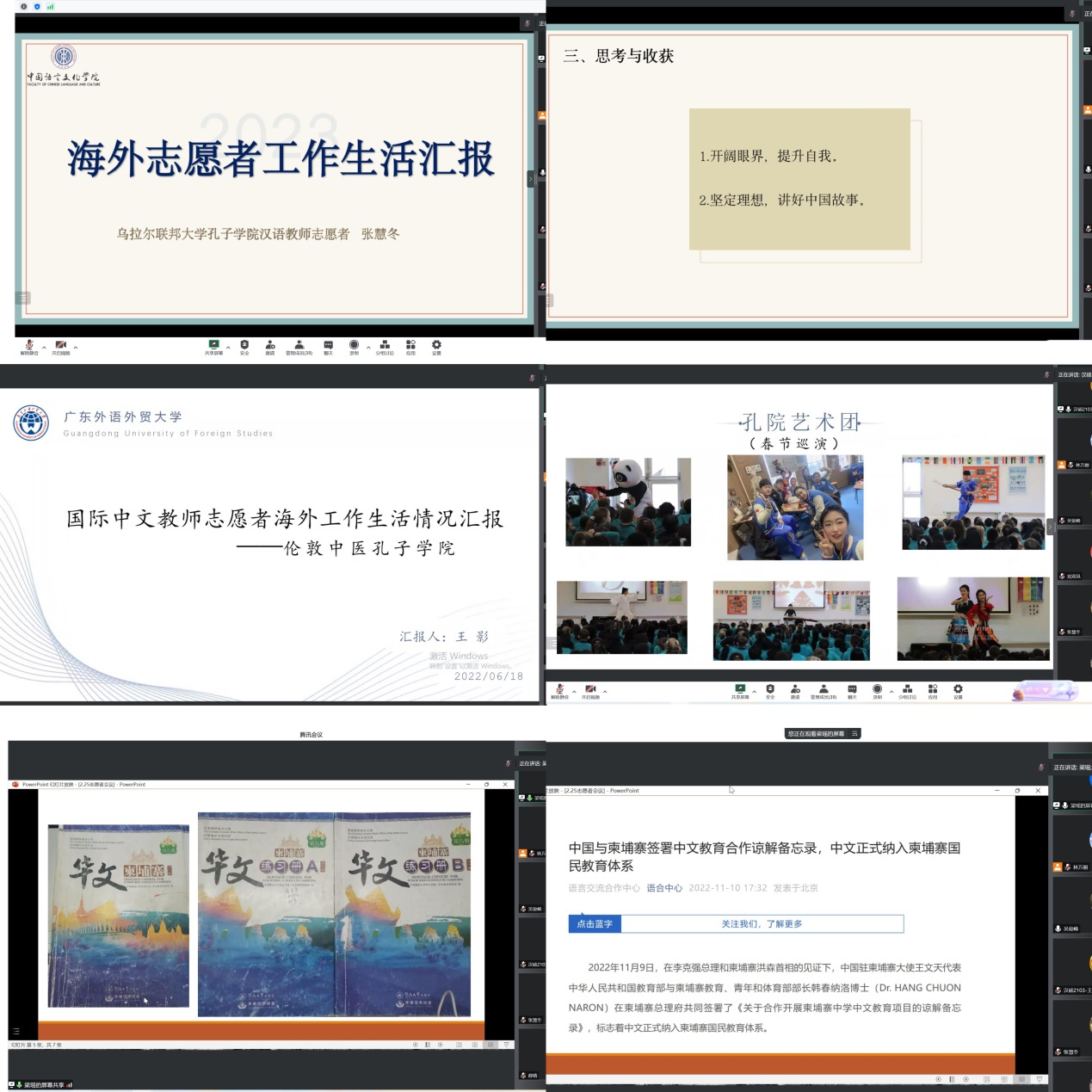 徐艺青、谢秀兰对志愿者们表达慰问和关心,同时希望志愿者们不断强化专业教学能力、跨文化沟通能力、组织协调能力等,助力中华文化国际传播,圆满完成志愿服务工作。陈恩维做会议总结,表示公司将进一步加强外派志愿者项目管理,建设好教学和服务案例库,努力推动公司国际中文教育人才培养高质量发展。