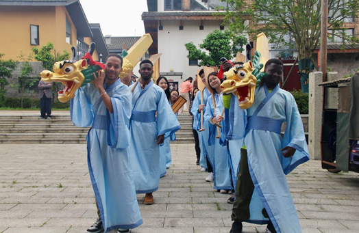 此行,师生们首先来到屈子公司。职工畅谈中文学习之趣,中国学子则以文艺演出展现华夏风采。随后,中外学子同制香囊、习练书法,共沐传统艺术之泽。此外,师生身着楚服,吟咏《橘颂》,挥桨竞渡龙舟,巧手包裹粽子,夜聚篝火,欢声笑语绕梁不绝。长乐麻石古街上,他们踏访古迹,亲历古今,体验领略踩高跷、舞龙等民间艺术文化的魅力。最后,众人走访屈子文化园,拜谒屈子祠,欣赏碑林书法,体验碑林拓印,感受中国千年文化底蕴与诗祖深邃情怀。
