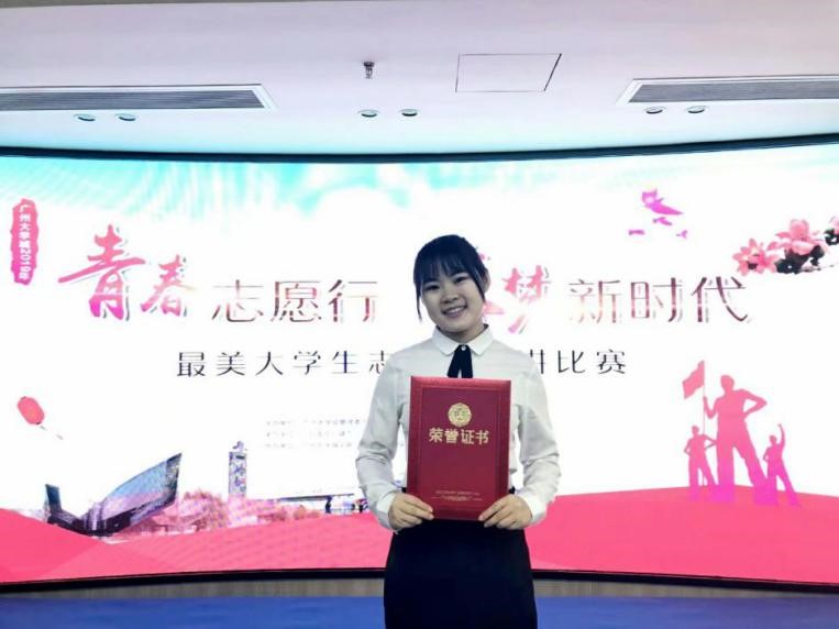 大学四年,杨凯如一直参与着各类志愿服务,在这些活动中,她收获了实践经历,更深深感受着“奉献、友爱、互助、进步”的志愿精神。大一,在周日英语公司义教组织的同城义教中,杨凯如积累了课堂实践经验,也第一次体会到了付出的快乐。无论是天真无邪的小朋友,还是认真可爱的老年人,他们对于知识的渴望和对于志愿者的热情总是能深深打动自己。杨凯如永远记得员工给她的拥抱和留下的微笑,那是她收到的最棒的礼物。也就是那时起,杨凯如坚定了要做一名更加优秀的志愿者的信念。之后的三年,她参加了“蓝信封”邮筒通信大使活动,和一名偏远地区的小女孩通信一年,从最开始的寥寥数语,到最后的无话不谈,虽未曾相见、却始终相互陪伴,她们彼此信任、共同成长。杨凯如还参与过“为爱而照”关爱老人活动,到敬老院为一些老年夫妇拍摄婚纱照,过程中有老人向她展示自己孩子的照片,分享旅游的纪念品,相处虽短,但那种温暖却一直萦绕在杨凯如心间。此外,杨凯如还参加了“慧灵义工”“星际之旅”等关爱特殊儿童的志愿活动,一日的陪伴,虽然很难换来孩子一个微笑,但当地的义工告诉她,“其实孩子们很喜欢你们过来。”杨凯如还参与过“大学开放日”、雷锋日活动、在疫情期间参与了“广外一线医护人员子女线上辅导陪伴项目”,也在曾处于高风险地区的家乡做一线志愿者……这些经历都让杨凯如不断体会着奉献自我、服务他人的意义。