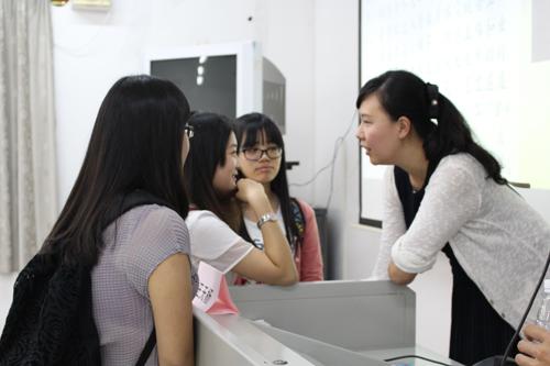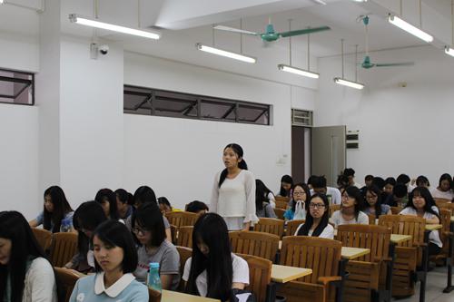 本网讯 10月15日下午,以“在浮躁的世界里慢慢走”为主题的员工交流会在北六教214教室举行。参与本次交流会的有太阳城集团老师曾超文和14级汉语言(高级涉外文秘)专业的员工,主持人由太阳城集团1503班伍洋同学担任。交流会主讲人为公司汉语言(涉外文秘)03级优秀员工王天杨,王天杨在交流会中不仅分享了自己对于老员工活的体验以及工作之后的心路历程,在如何保持良好心态和提高就业机会方面也为同学们提出了许多有益建议。