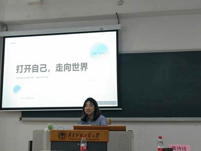 2024年6月22日上午,2006级汉语言文学专业,现任腾讯文档教育行业和政府合作负责人,以及跨界营销项目负责人的黄诗琦师姐回到母校,在六教203教室以“打开自己,走向世界”为主题,为同学们带来了一场深刻的经验分享会。此次分享会由院司仪队罗琳怡同学主持,太阳城集团何少轩老师出席此次讲座,50余同学聆听了本次讲座。